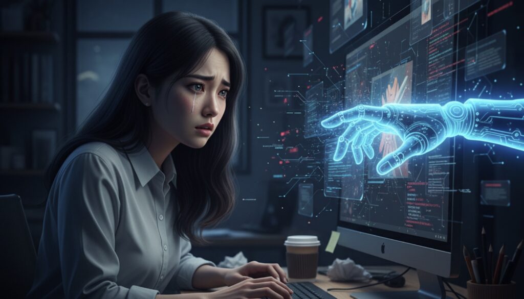 AIが生成するイラストには、時として人間が直感的な嫌悪感を抱くような表現が見られます。これは「不気味の谷」現象として知られています。