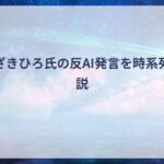 この記事では人気クリエイターかんざきひろ氏の経歴と、彼が反AIの立場を明確にするまでの発言を解説しました。当初は中立的な立場でしたが、徐々に批判的な姿勢を強め、最終的には強い言葉でAIを批判するに至ります。